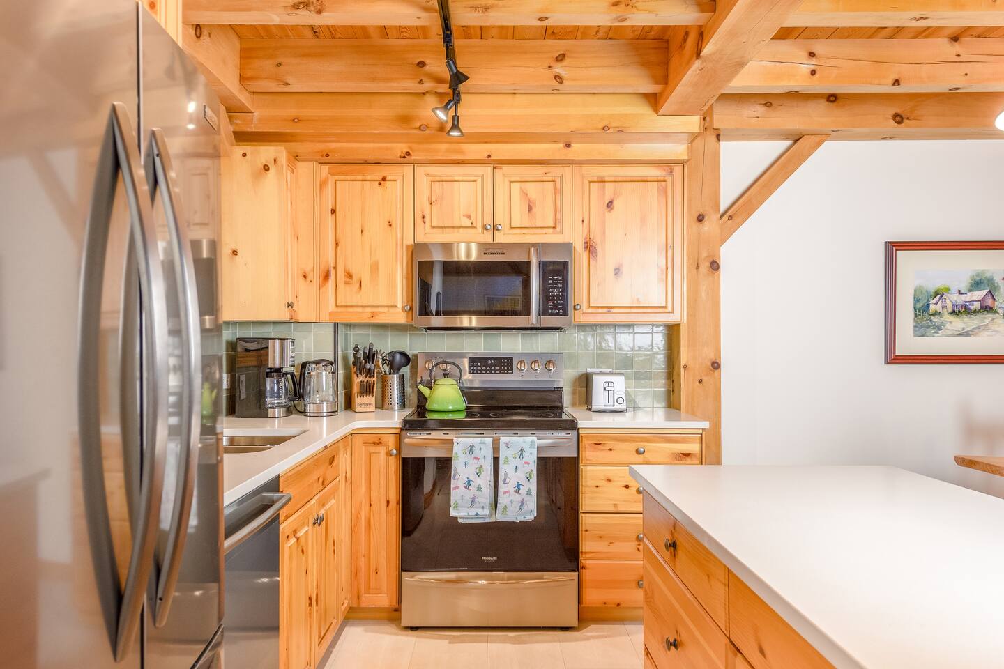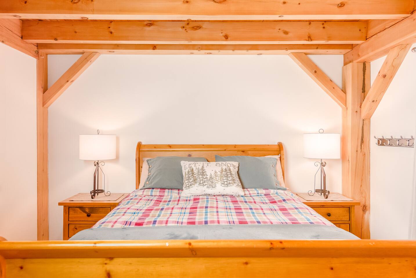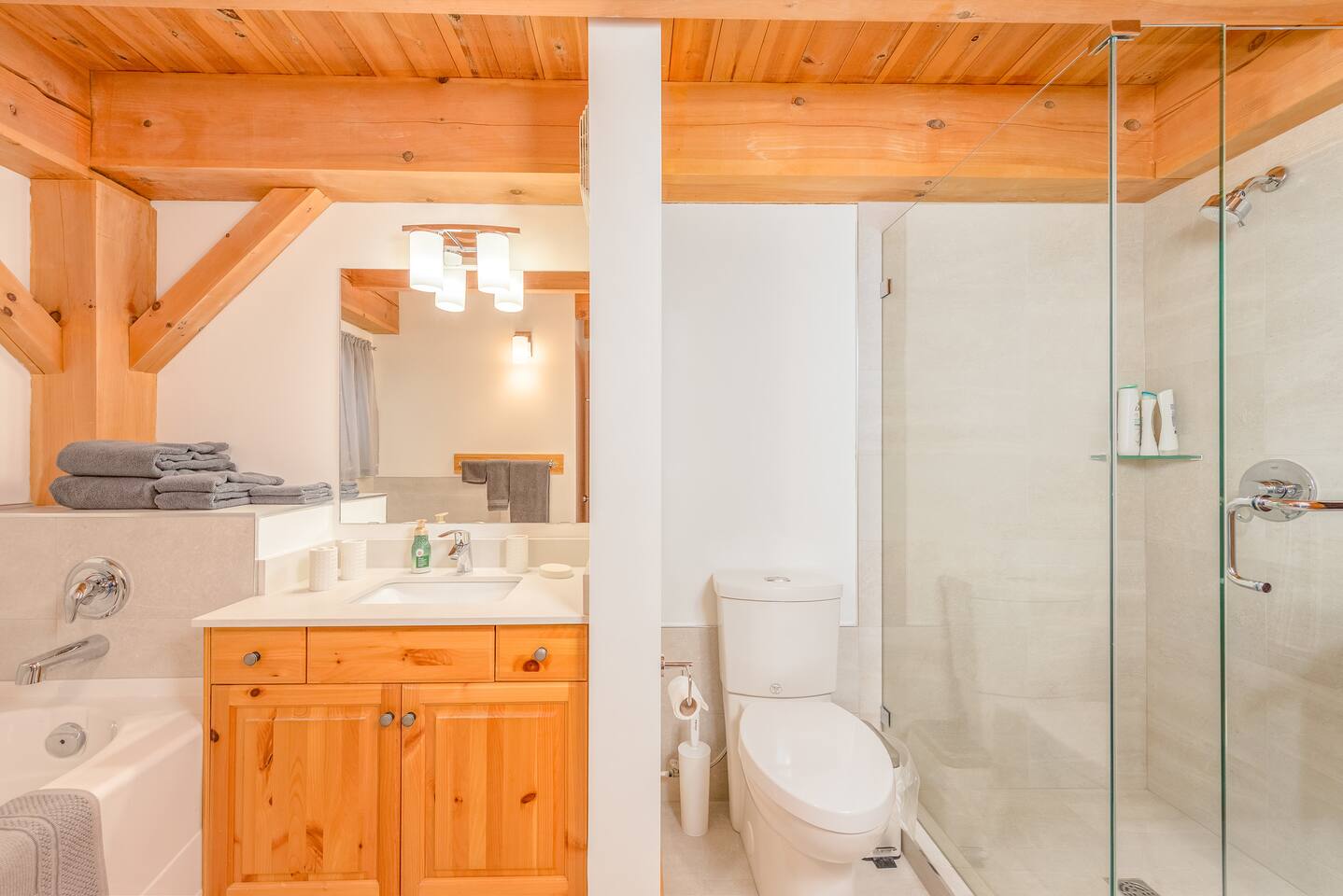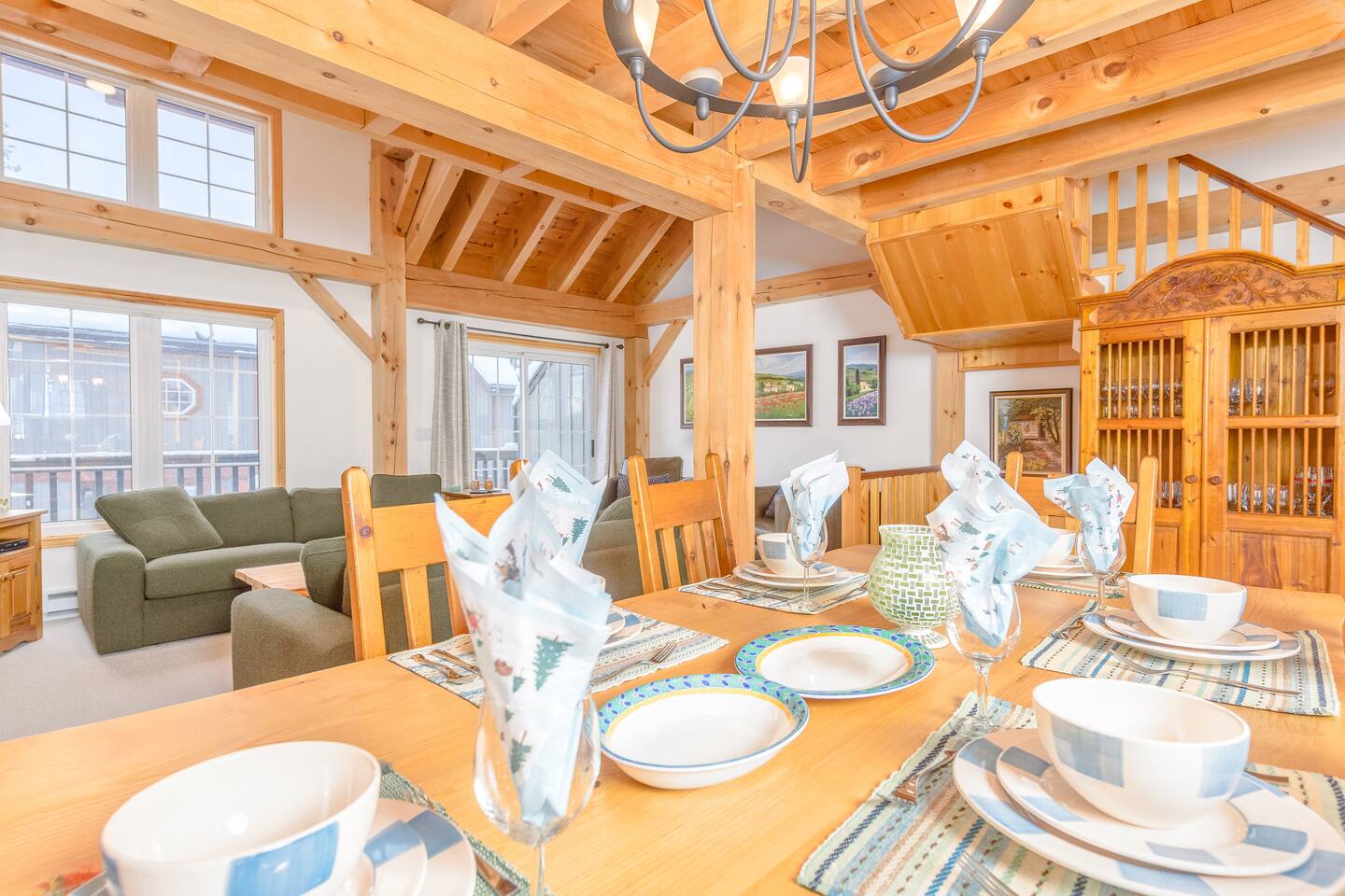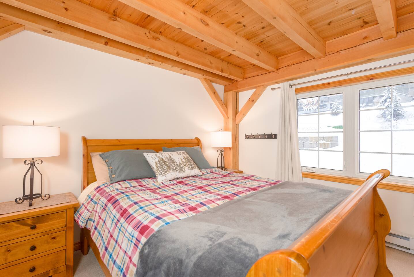 ✔ Cozy Ski-In Chalet – Timber-frame design with large windows, warm wood accents, and stunning forest views at Big White. ✔ Spacious Living Room – Two comfy sofas, gas fireplace, mounted TV, and soaring two-storey windows that fill the space with natural light. ✔ Reading Nook – A quiet corner with leather armchairs for relaxing, reading, or sipping your après-ski drink. ✔ Fully Equipped Kitchen – Stainless-steel appliances, cookware, dishes, coffee station, and everything needed for home-cooked meals. ✔ Dining Area – Solid wood table with seating for six, perfect for family dinners and board games. ✔ Private Hot Tub – Nestled outdoors among snow-covered evergreens for a peaceful, scenic soak. ✔ Bedroom 1 (Main Floor) – Queen sleigh bed, warm lighting, and easy access without stairs. ✔ Bedroom 2 (Main Floor) – Cozy room with timber accents and natural light—ideal for kids or a second couple. ✔ Primary Bedroom (Upper Level) – Lofty vaulted beams, spacious bed, and access to an updated walk-in shower bathroom. ✔ Loft Bedroom – Fun, treehouse-style space accessed by ladder, perfect for kids or teens. ✔ Two Updated Bathrooms – One with walk-in glass shower; one with tub/shower combo for families. ✔ Private Deck – Outdoor space for morning coffee or mountain sunset watching. ✔ Attached Garage – Excellent storage for skis, boards, and winter gear; sheltered parking when available. ✔ Ski-In/Ski-Out Access – Glide straight to the slopes when snow conditions allow. ✔ Multi-Level Home – Stairs inside and a loft ladder (may not be ideal for very young children or mobility concerns). Ski In/Out: ✔ Ski in via the Hummingbird Green Run pull off just below the Eagles Building and walk across the road to Alpine Timbers. ✔ Ski out by walking across the road to the Hummingbird Green Run which will take you to the bottom of the Ridge Rocket, Snow Ghost and Plaza chair lifts.