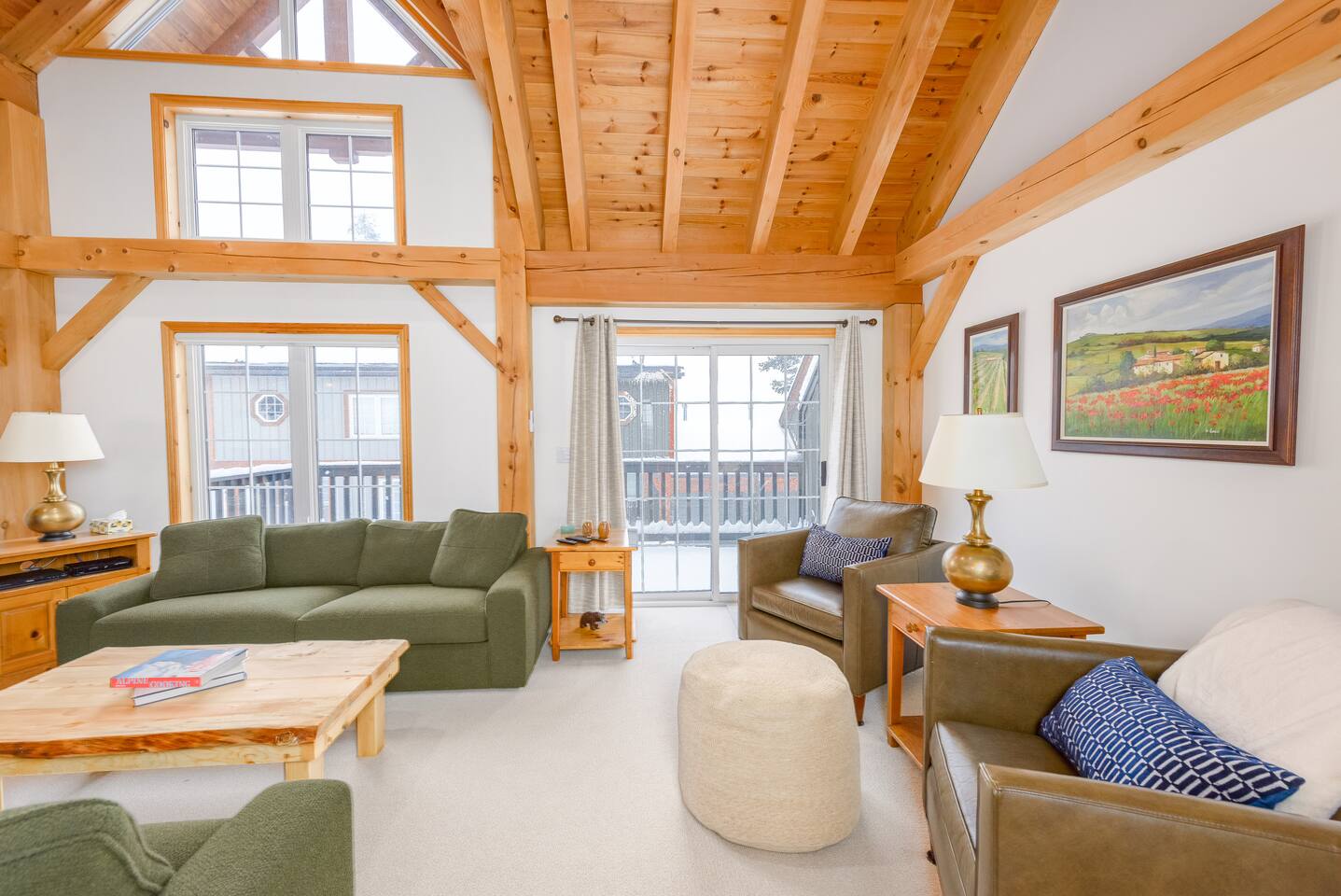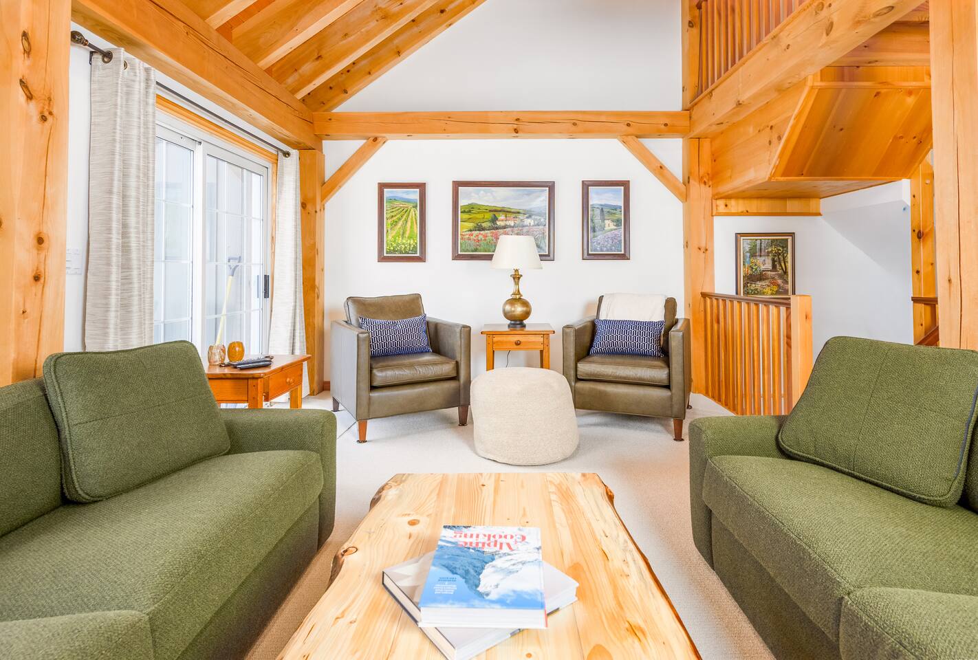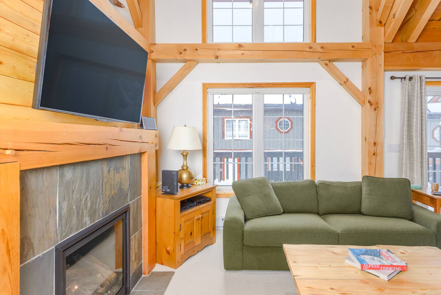 Wake up to snow-draped trees, clip into your skis and glide straight onto Big White’s runs from this warm timber-frame chalet with private hot tub. Sunlight pours through two-storey windows, a crackling fireplace anchors the living room, and a fully stocked kitchen and long farmhouse table invite big family dinners. Après-ski, sink into the steaming spa, then retreat to cozy bedrooms and a lofty hideaway under soaring beams.