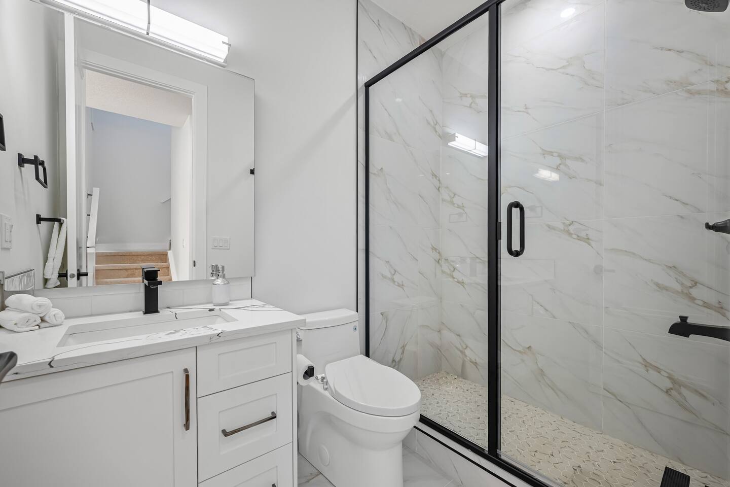 Guests will have private and exclusive access to the upper main home, including: ✔ All 4 bedrooms and 2.5 bathrooms ✔ Fully equipped kitchen and dining area ✔ Living room and common spaces (main floor) ✔ In-suite laundry ✔ On-site parking (driveway only) As shown in the listing photos, access to the main entrance requires climbing one exterior flight of stairs, so the home may not be suitable for guests with mobility limitations.