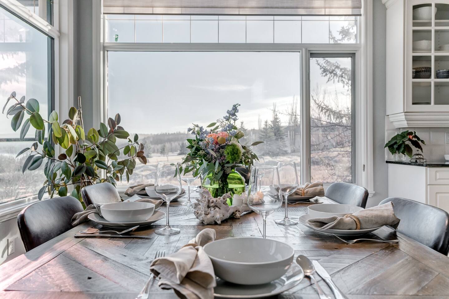 The retreat is situated in the community of Springbank in Rural Rocky View County. Just moments from Calgary, this sanctuary offers a unique blend of urban proximity, mountain allure, and river access. Your ideal escape, seamlessly nestled between the city lights and the Rocky Mountain heights.