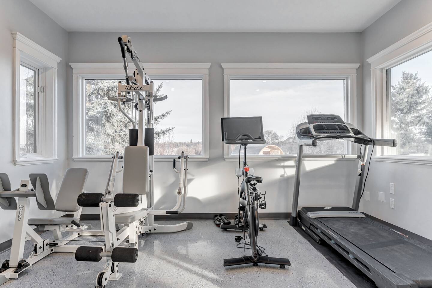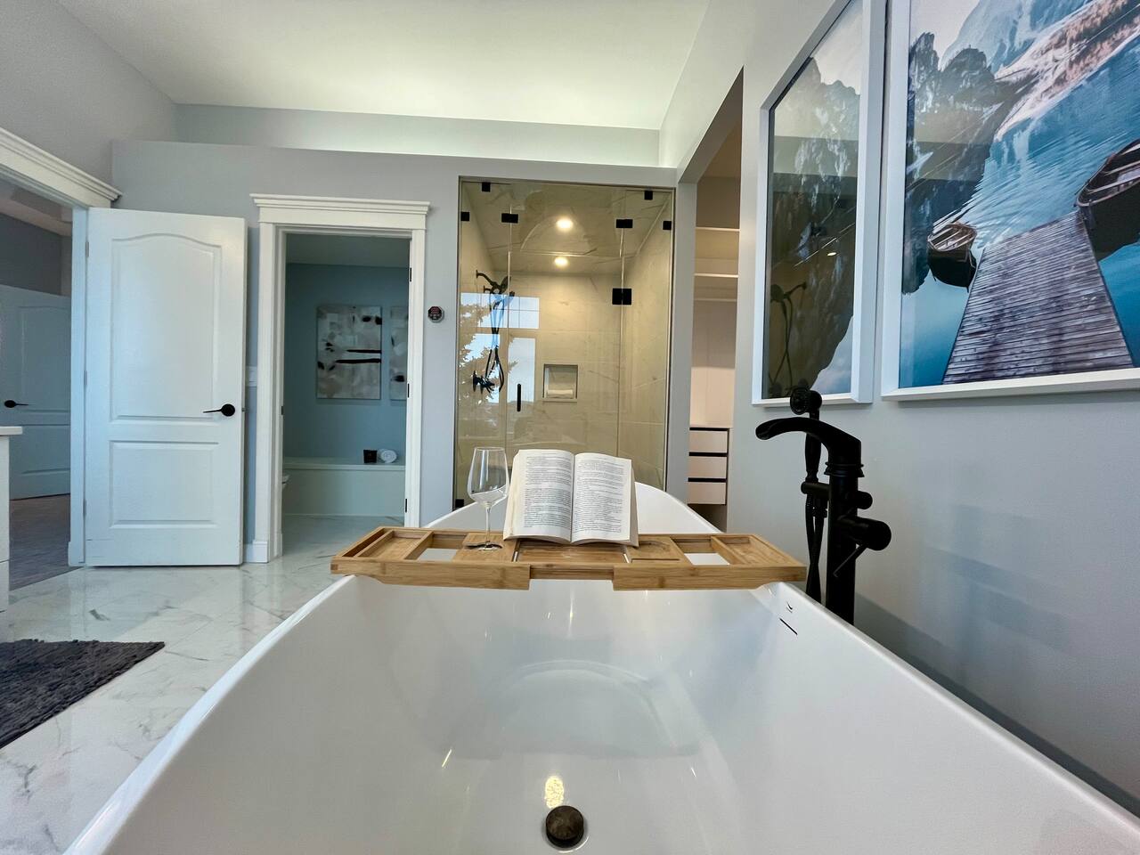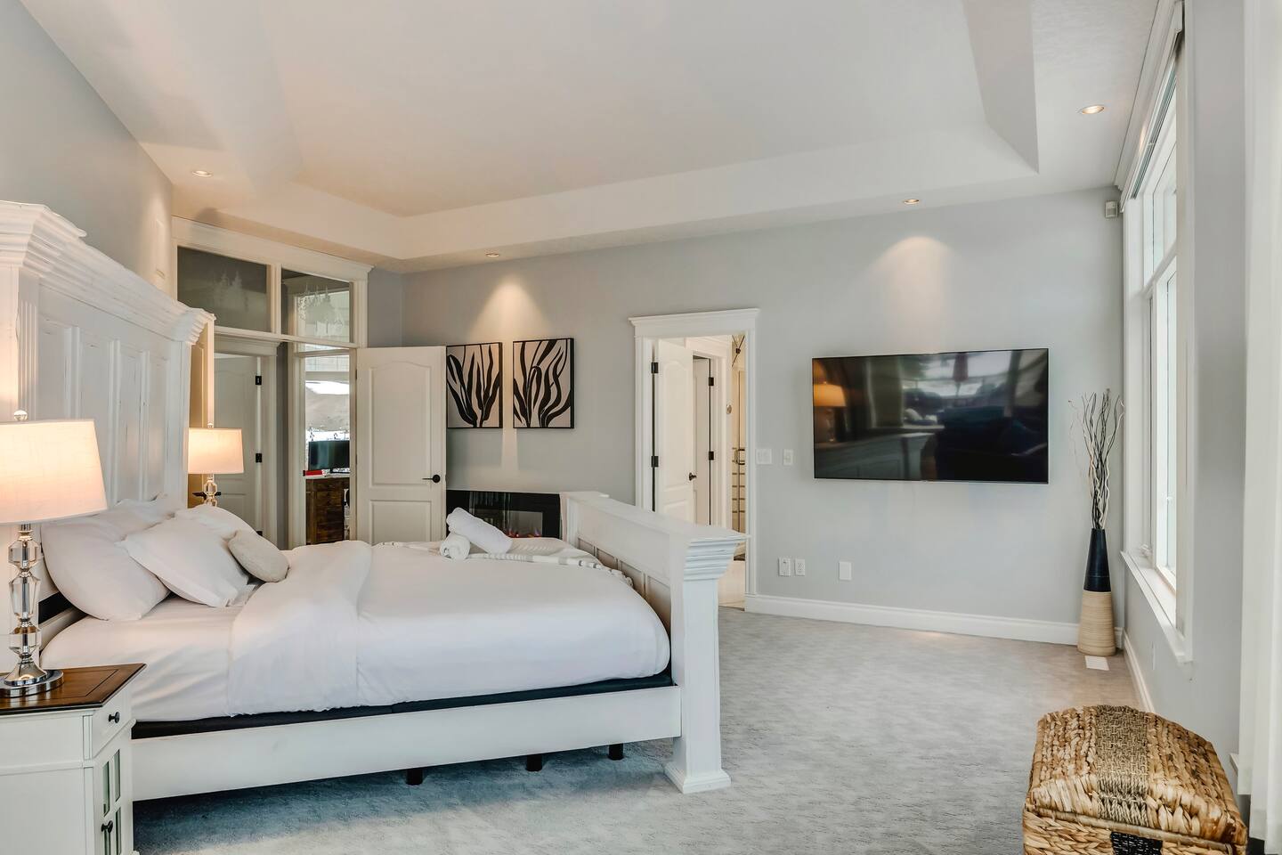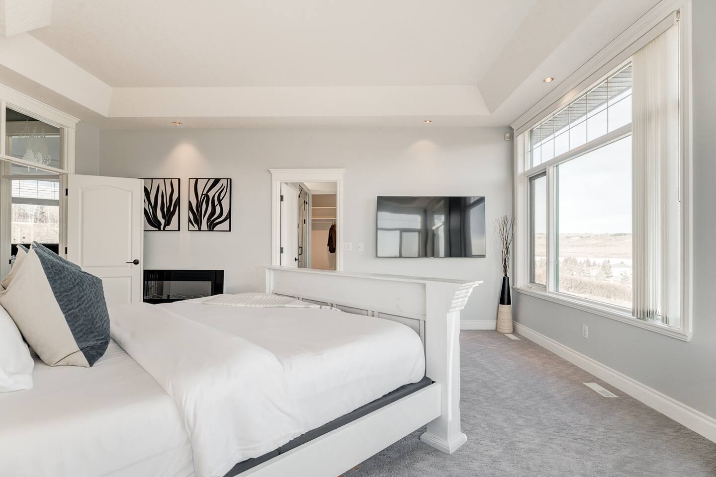 1) Exterior: - Hot Tub - 2-acre serene location with private fire pit - Views of the 6th hole of Springbank Links golf course - Patios and sun decks for large gatherings - Dog run for family pets - Away from the city, perfect for stargazing - Frequent deer sightings 2) Interior: - Private gym - Pool table - King bed in Master Bedroom and Loft - Water views from a high-ceilinged foyer - Vaulted great room with a cozy stone fireplace - Elegant dining space - Fully-equipped, spacious kitchen - Luxurious owner's suite with a six-piece ensuite - Serene bedrooms with shared access to modern baths - Walkout level for entertainment, fireplace, and wet bar - High speed internet - Fresh linens - Complimentary Coffee and Tea