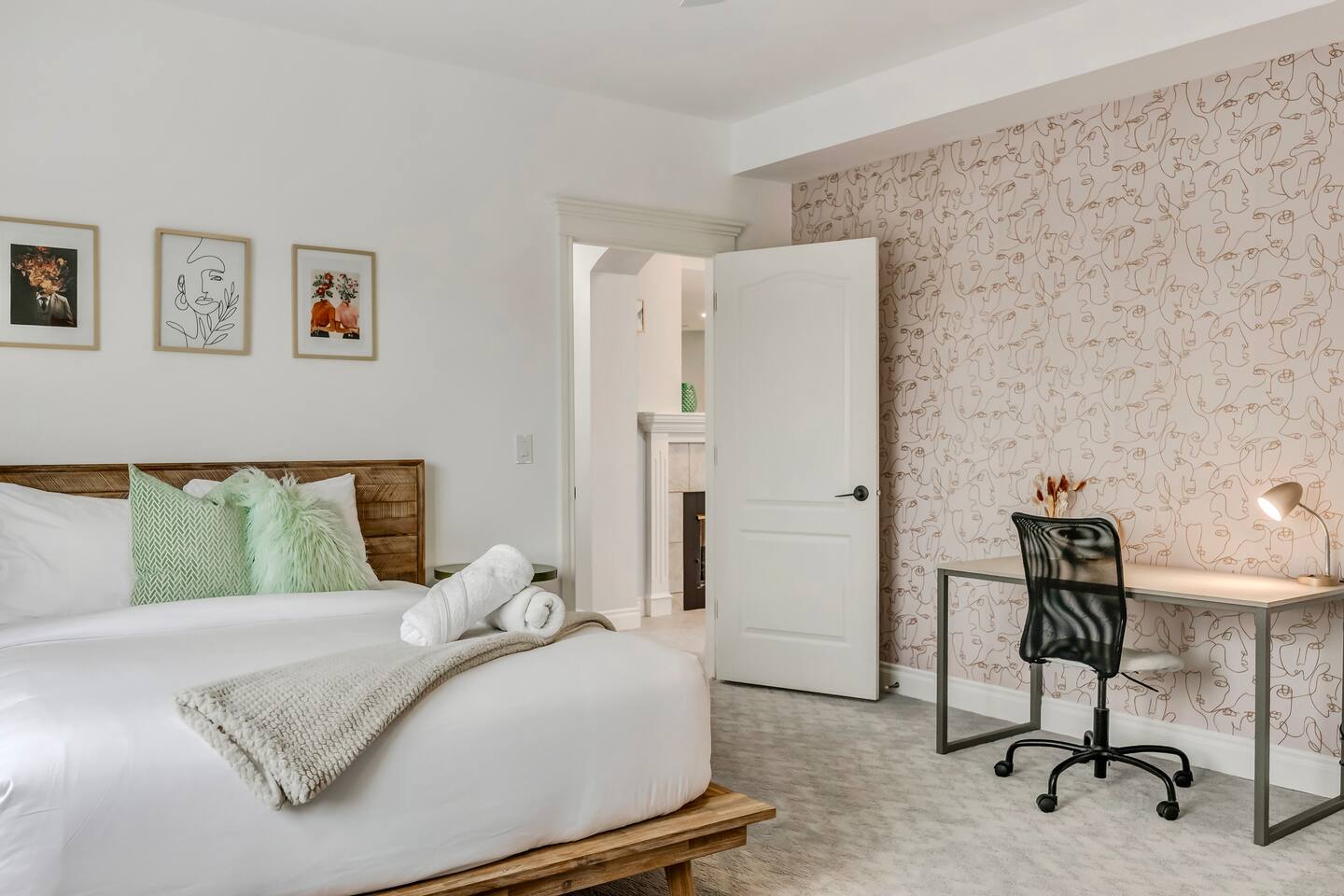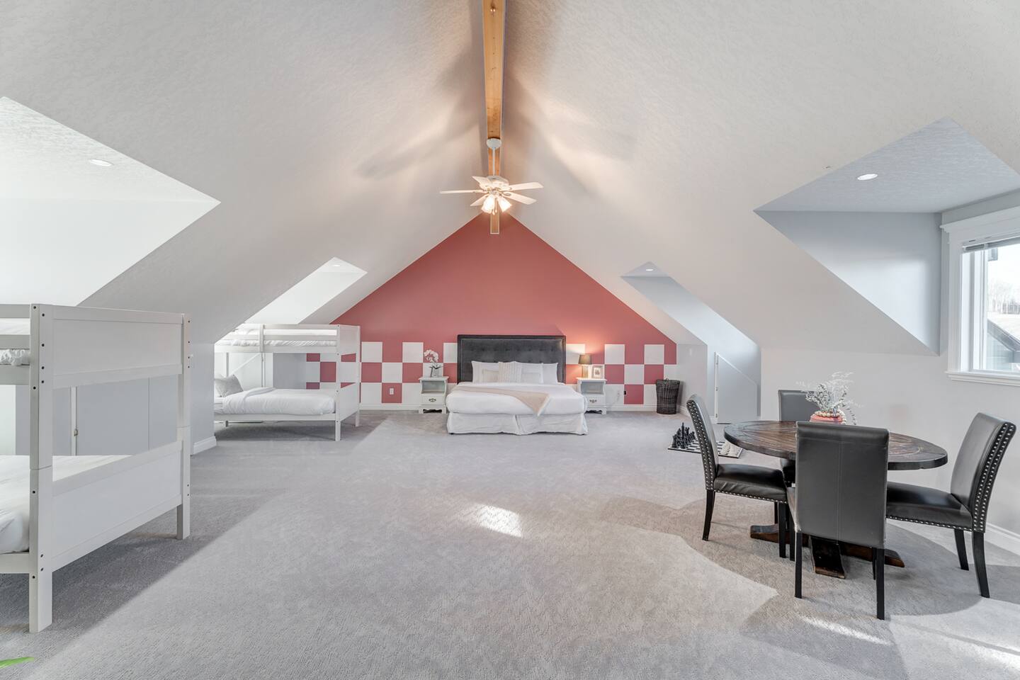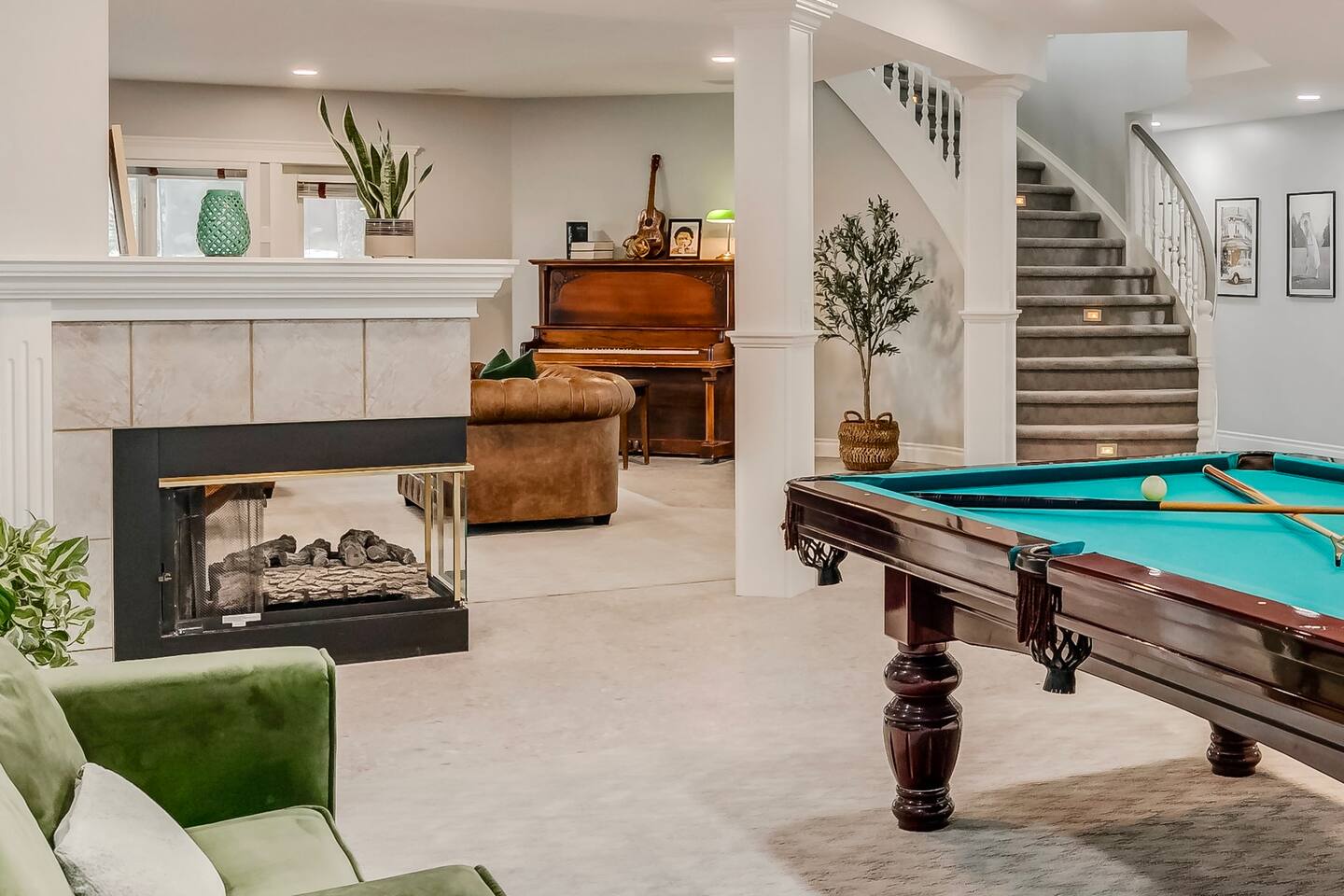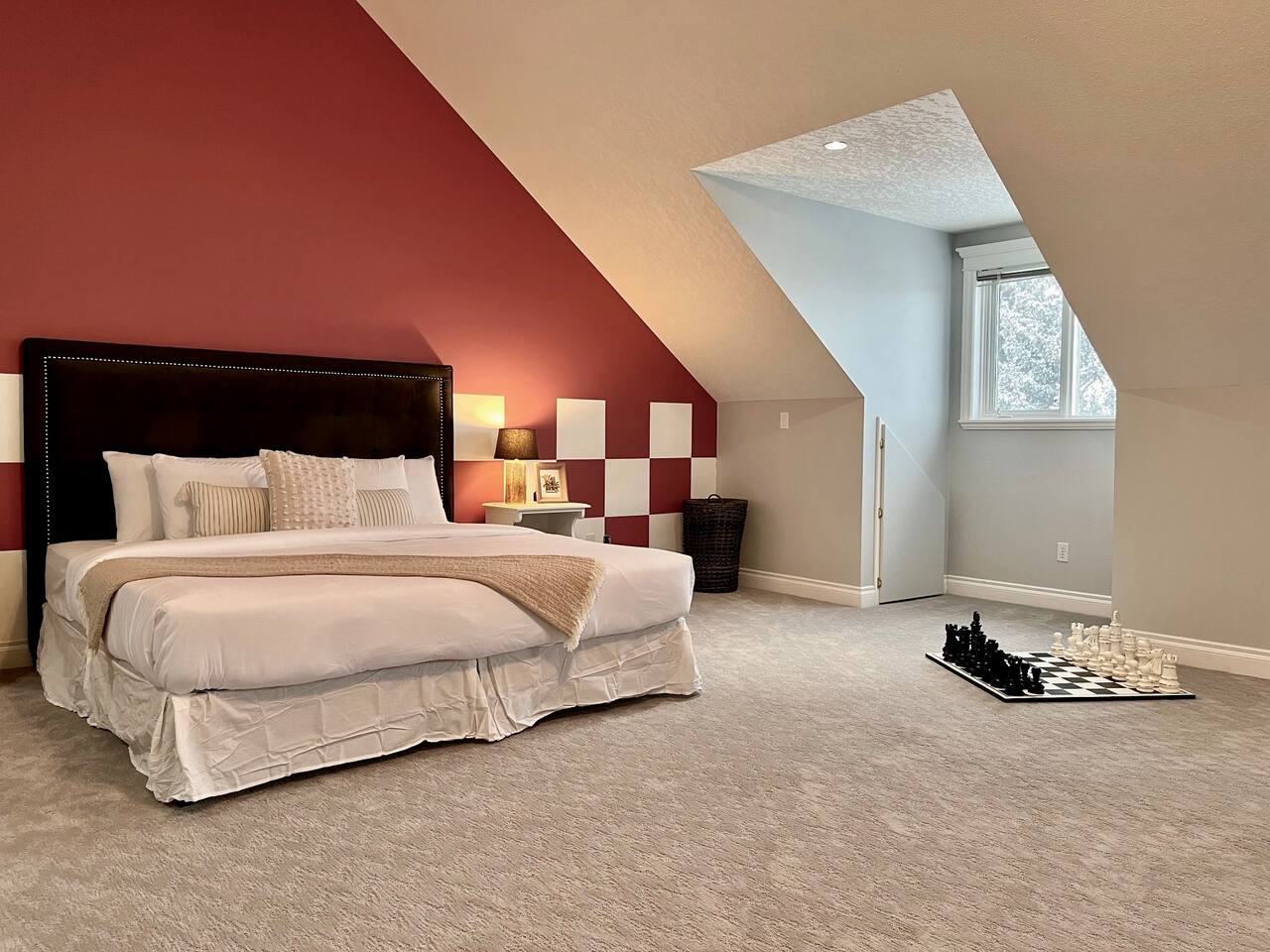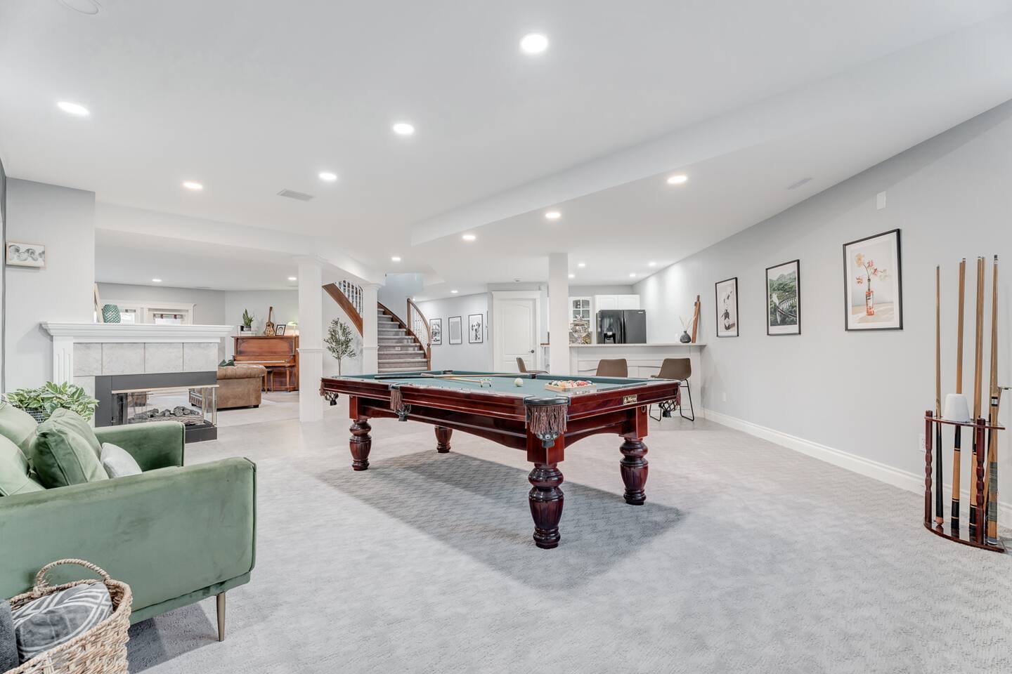 1) Exterior: - Hot Tub - 2-acre serene location with private fire pit - Views of the 6th hole of Springbank Links golf course - Patios and sun decks for large gatherings - Dog run for family pets - Away from the city, perfect for stargazing - Frequent deer sightings 2) Interior: - Private gym - Pool table - King bed in Master Bedroom and Loft - Water views from a high-ceilinged foyer - Vaulted great room with a cozy stone fireplace - Elegant dining space - Fully-equipped, spacious kitchen - Luxurious owner's suite with a six-piece ensuite - Serene bedrooms with shared access to modern baths - Walkout level for entertainment, fireplace, and wet bar - High speed internet - Fresh linens - Complimentary Coffee and Tea