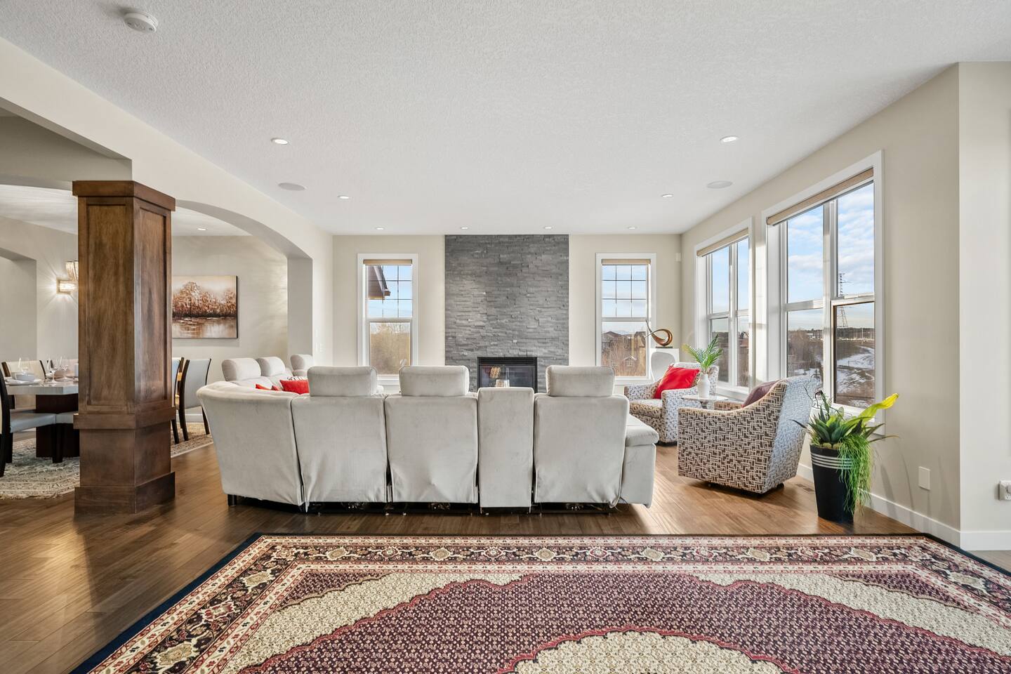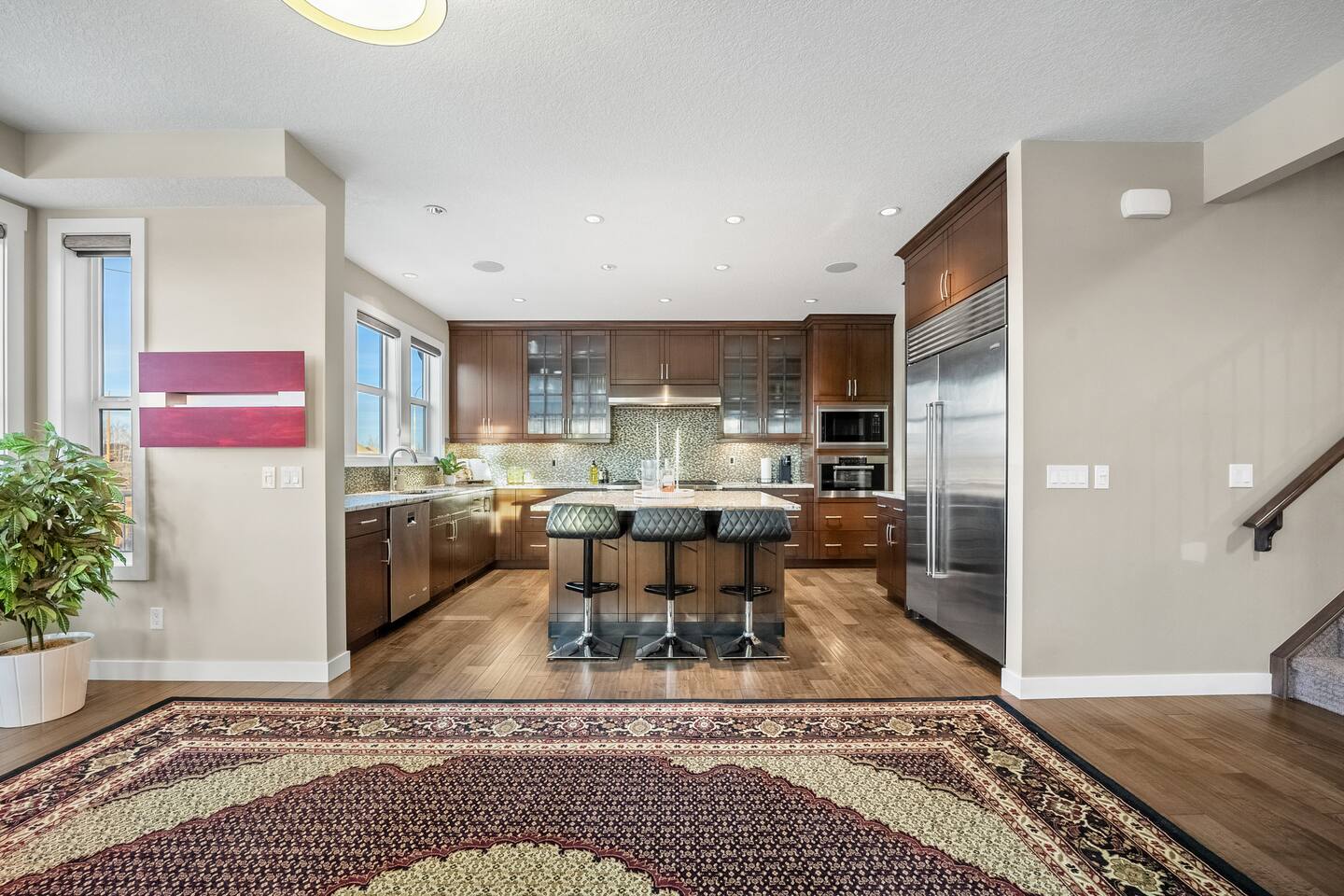 Stay in Luxury at This Stunning Aspen Woods Sanctuary in Calgary! ✔ Over 3,000 sqft of Elegant Living Space ✔ Central Air Conditioning for Year-Round Comfort ✔ Prime Aspen Woods Location, 15 minutes to Downtown Calgary ✔ Open-Concept Main Floor with Large Windows & Natural Light ✔ Private, Expansive Backyard Oasis with Scenic Views ✔ Gourmet Kitchen with Wolf & Subzero Appliances ✔ Spacious Bedrooms, Each with Walk-In Closet and Ensuite ✔ Master Suite with Jacuzzi Tub & Rainfall Shower ✔ Dedicated Office Space with Abundant Natural Light ✔ Fast High-Speed WiFi ✔ Large Upstairs Bonus Room for Entertainment ✔ Family-Friendly Layout with 4 Luxurious Bedrooms ✔ In-Suite Washer & Dryer ✔ Professionally Cleaned ✔ Self-Check in ✔ King Bed Book your stay today and experience the perfect blend of tranquility, luxury, and convenience in this exceptional family-friendly home!