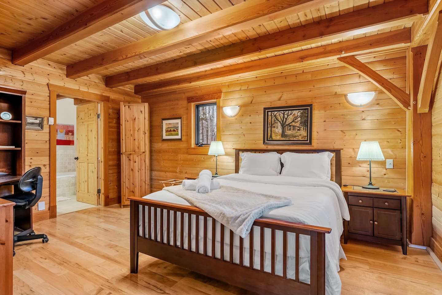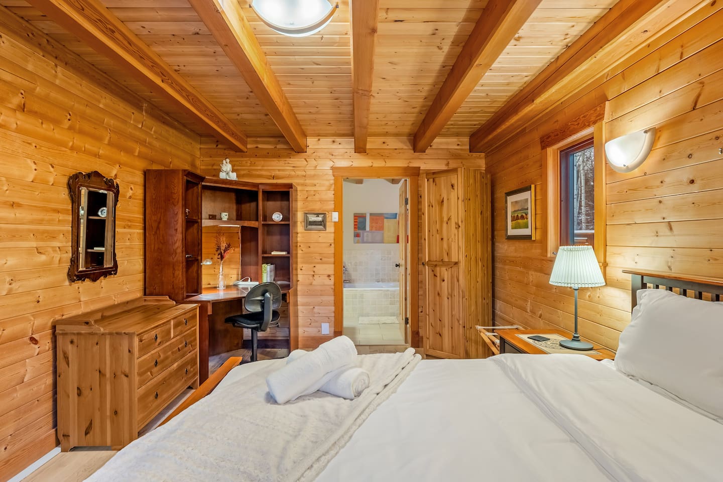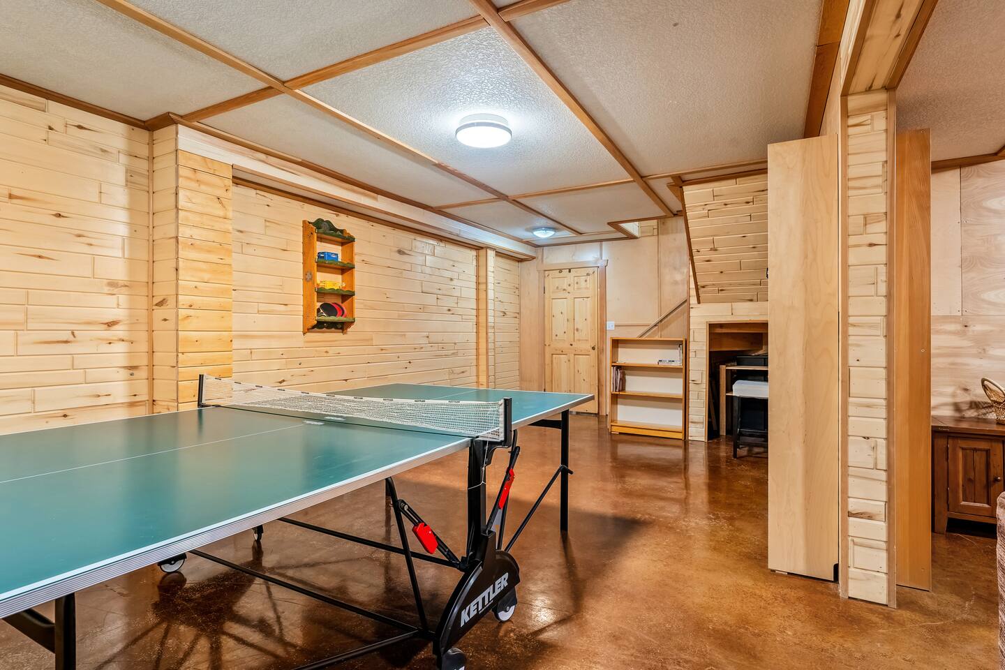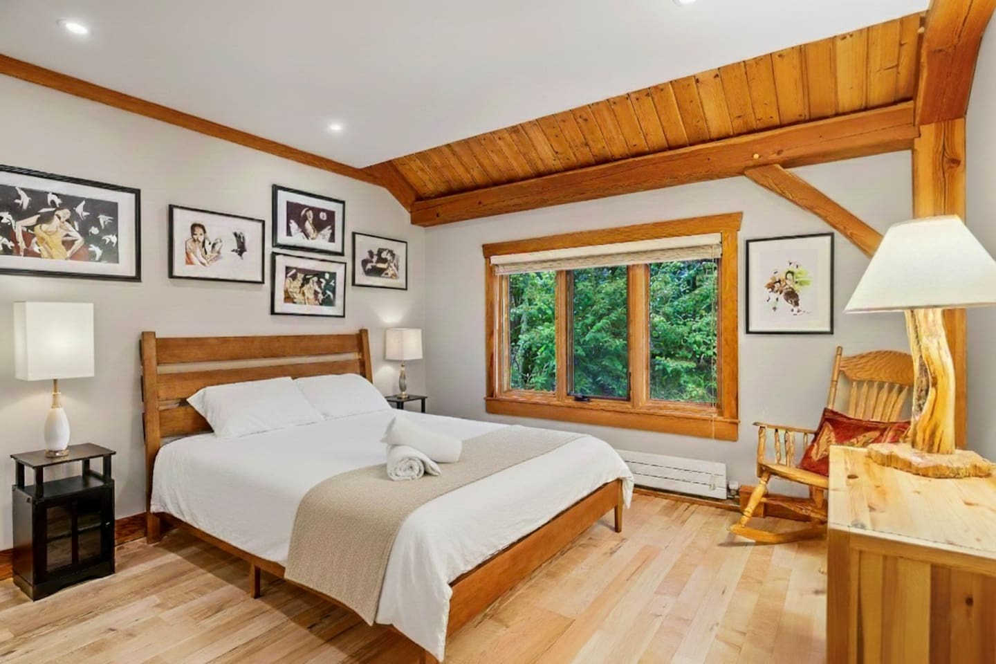 Guests have exclusive access to the entire 3,000 sq ft home, including all 5 bedrooms, 3.5 bathrooms, living areas, family room, fitness room, office spaces, basement with ping pong, hot tub, fire pit, and the surrounding 8 acres of private forested property with direct trail access out the back door.
