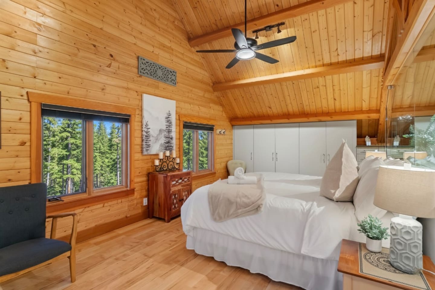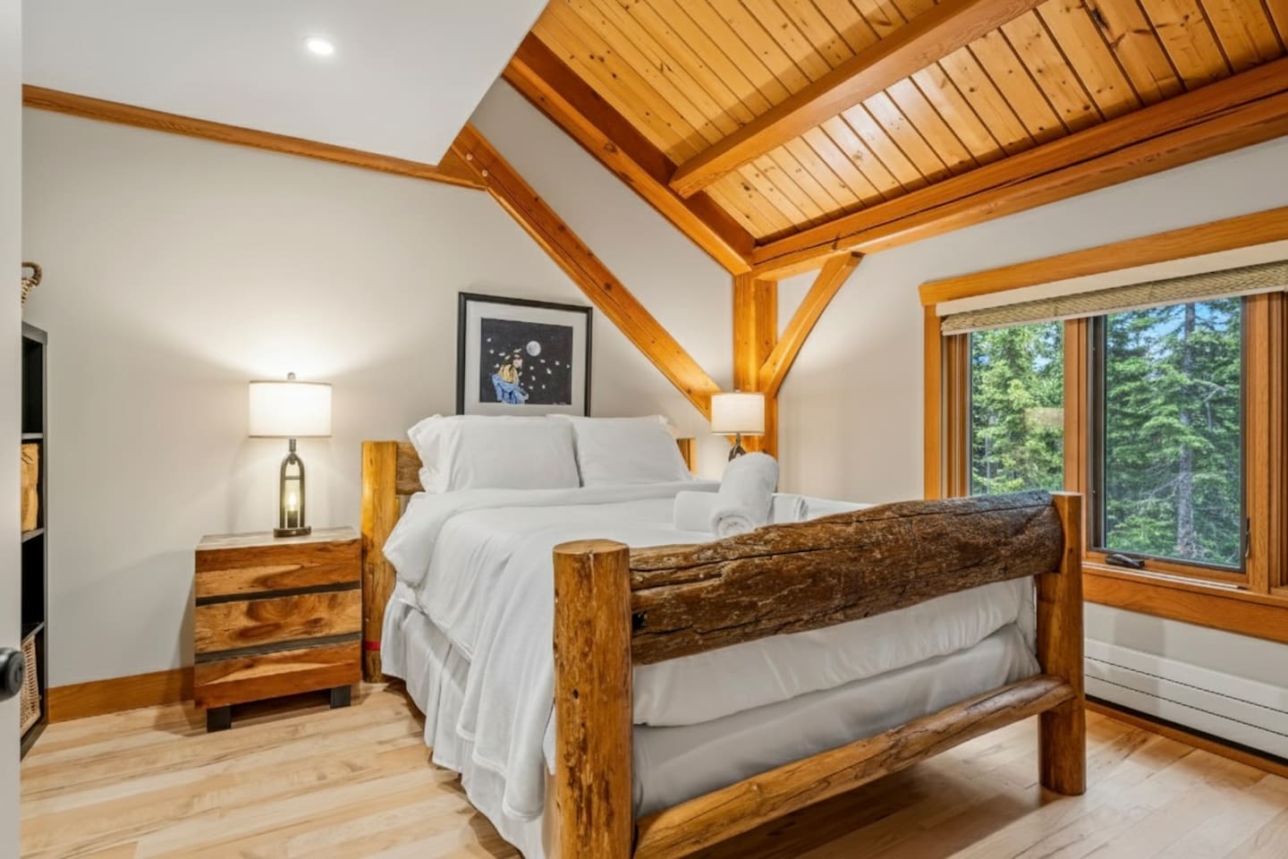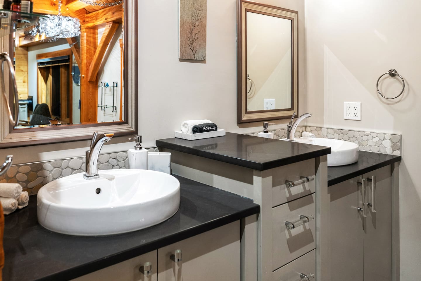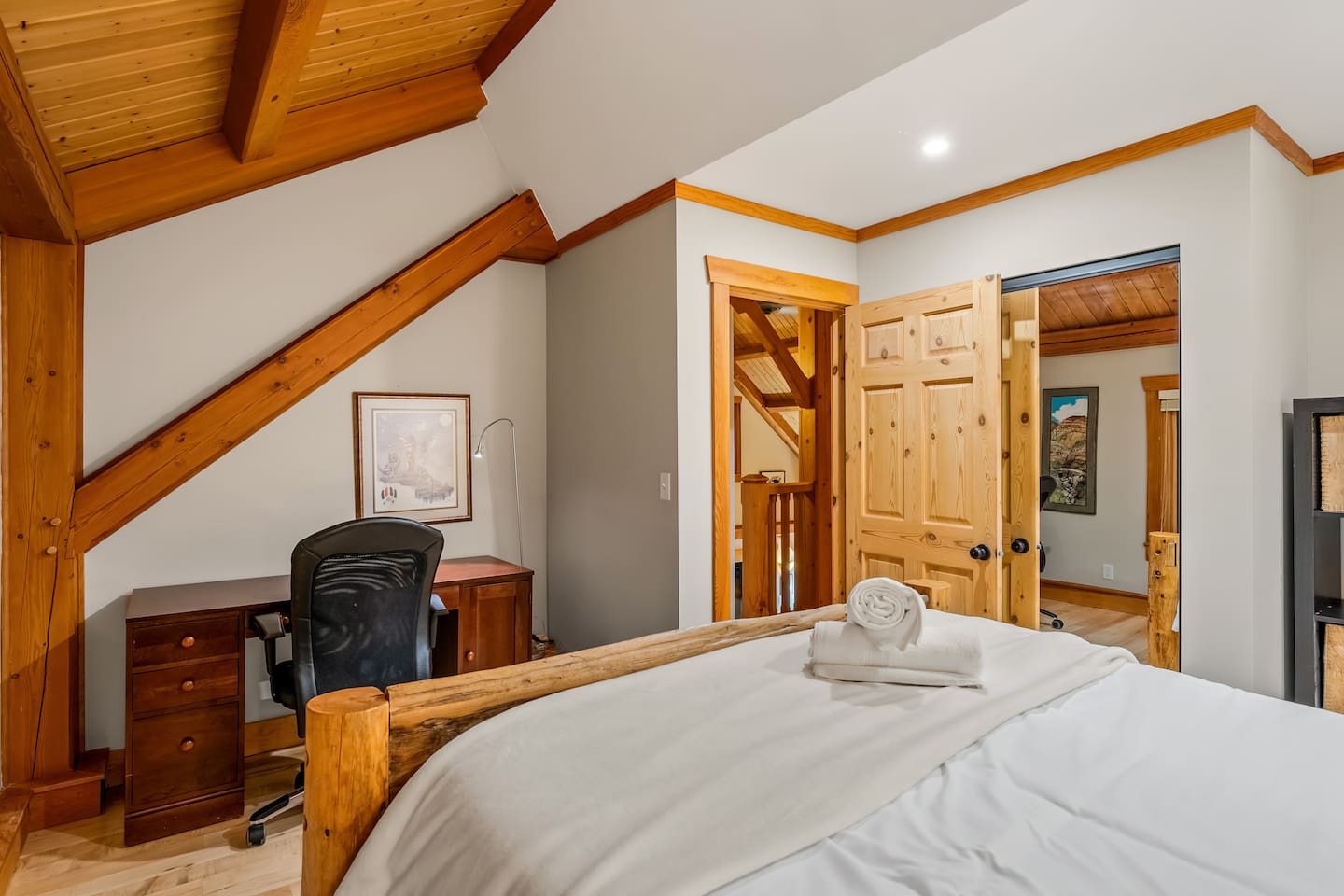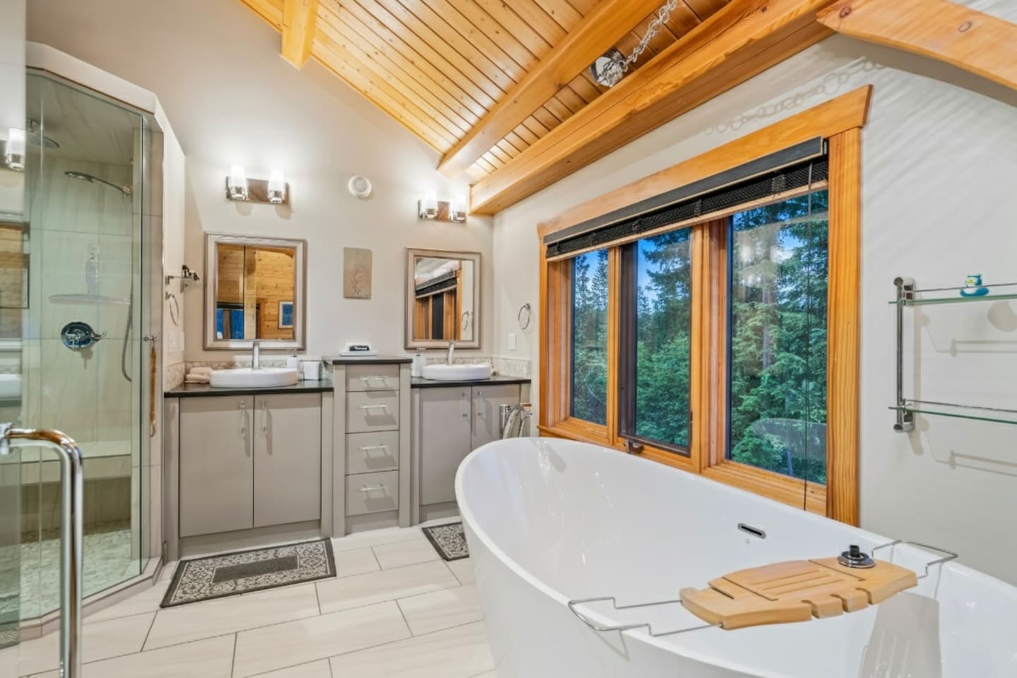 Guests have exclusive access to the entire 3,000 sq ft home, including all 5 bedrooms, 3.5 bathrooms, living areas, family room, fitness room, office spaces, basement with ping pong, hot tub, fire pit, and the surrounding 8 acres of private forested property with direct trail access out the back door.