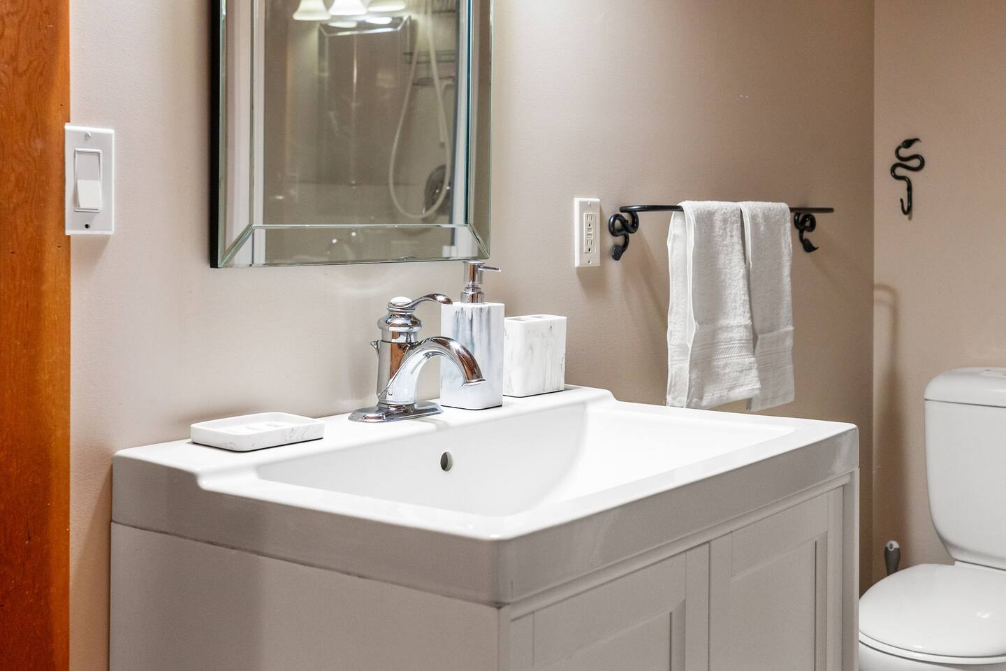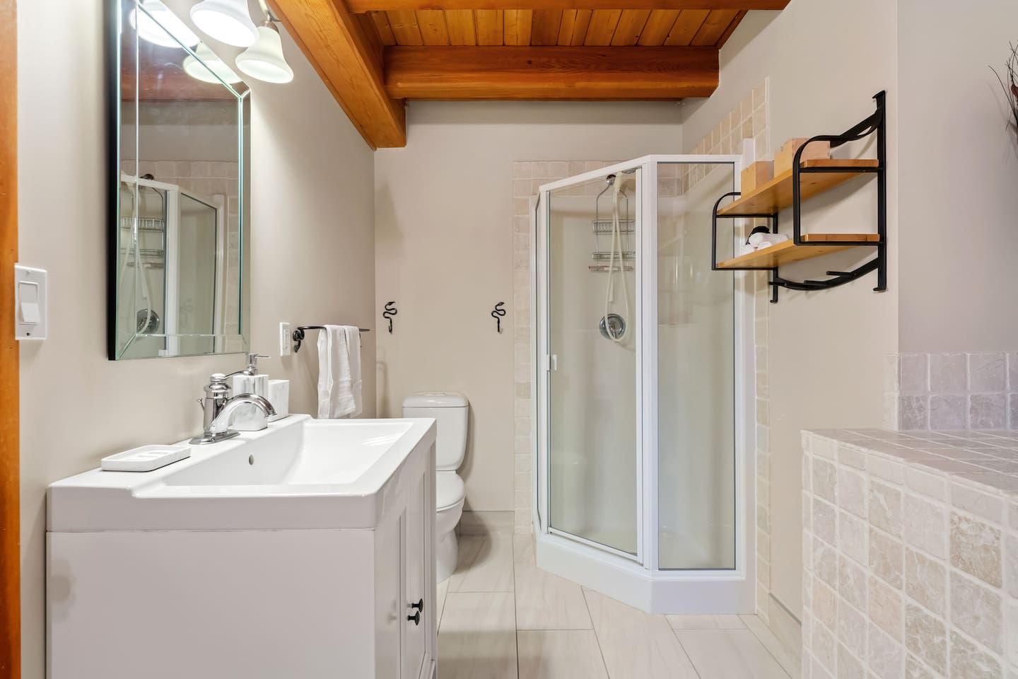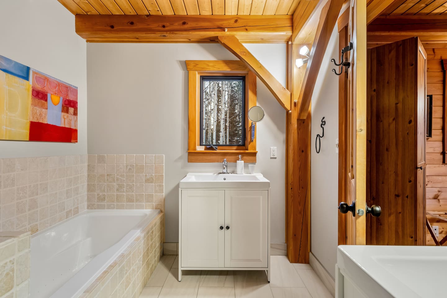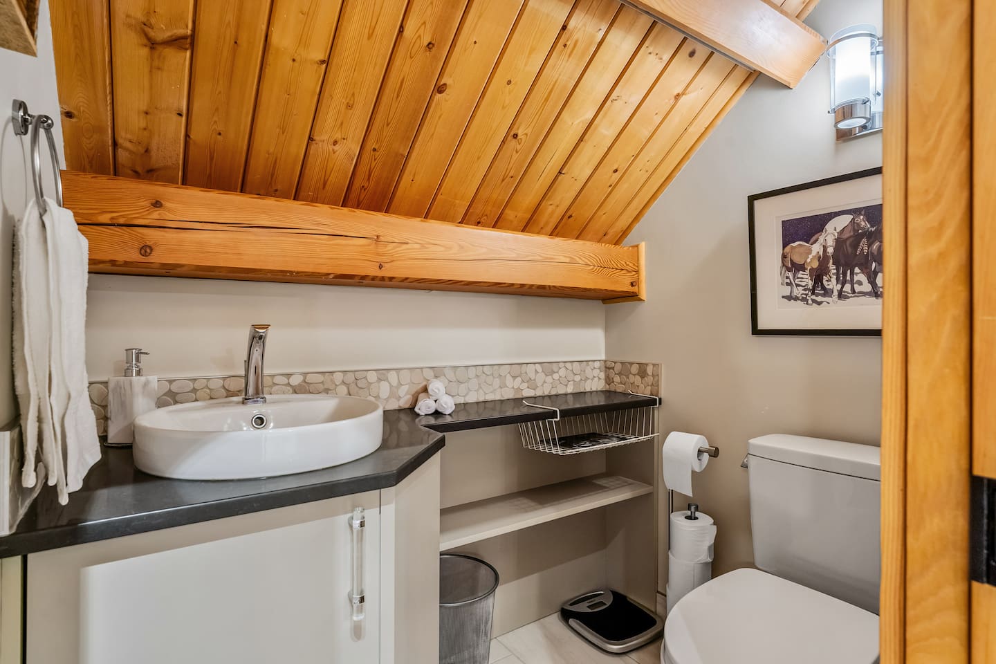 Guests have exclusive access to the entire 3,000 sq ft home, including all 5 bedrooms, 3.5 bathrooms, living areas, family room, fitness room, office spaces, basement with ping pong, hot tub, fire pit, and the surrounding 8 acres of private forested property with direct trail access out the back door.