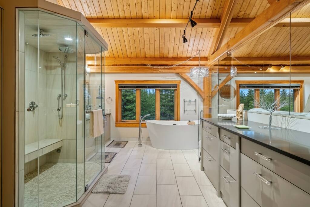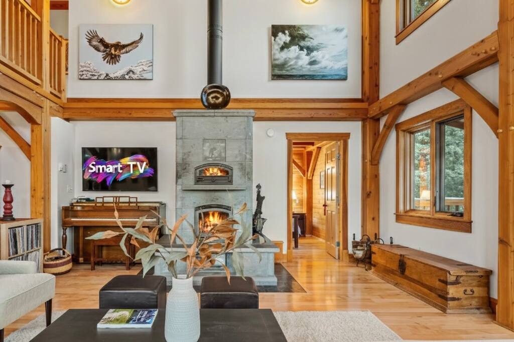 Escape to your private sanctuary nestled in the forest on eight acres in West Bragg Creek! Step out the back door onto endless trails for hiking, mountain biking, cross-country skiing, or snowshoeing across pristine Crown land. Whip up your favorite drink and unwind in the hot tub under starry skies. Gather around the fire pit for s'mores, or cozy up by the soapstone fireplace before you end the evening with yoga and meditation in the wellness lounge. Book now for an unforgettable adventure!