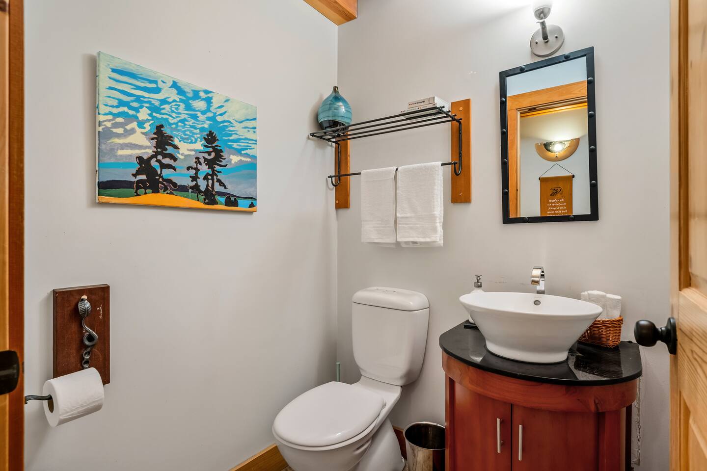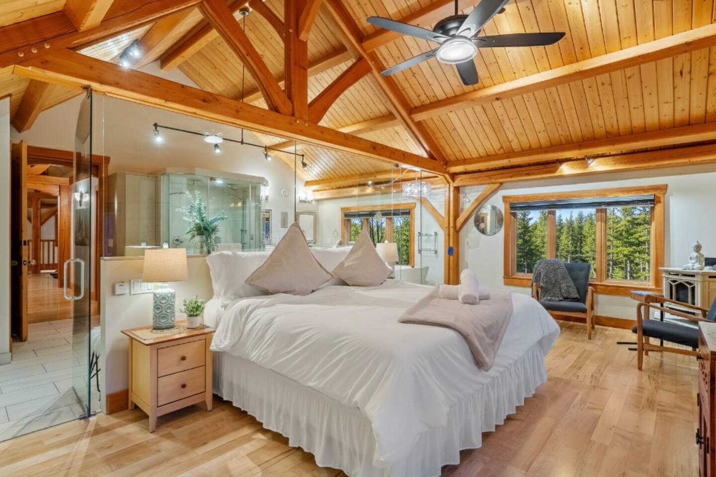 Nestled on 8 secluded acres of mature forest in the Rocky Mountain foothills, this spacious 5-bedroom home (1 king, 4 queens) sleeps up to 10 comfortably with 3.5 bathrooms, including a luxurious steam shower and jetted tub. Guests love starting their day with coffee on the deck, then heading straight out the back door for invigorating hikes, bike rides, cross-country skiing, or snowshoeing on trails that connect directly to hundreds of acres of untouched public land. In winter, enjoy groomed trails just 5 minutes away at West Bragg Creek for world-class Nordic skiing and snowshoeing. Return to soak in the private hot tub, roast marshmallows at the outdoor fire pit, or warm up by the radiant soapstone wood-burning fireplace. Inside, stay active in the dedicated fitness room with Bowflex, elliptical, and stationary bike; unwind in the bright, serene wellness lounge on the top floor, perfect for yoga sessions, meditation, or small wellness retreats with abundant natural light; compete in the basement ping pong table; or enjoy movie nights in the family room. Work remotely from bedroom desks with fast WiFi, play the upright piano, or dive into board games. In-floor heating keeps everything cozy. Just 10 minutes to Bragg Creek hamlet for cafes, restaurants, and shops, yet it feels worlds away in this private, nature-immersed retreat.