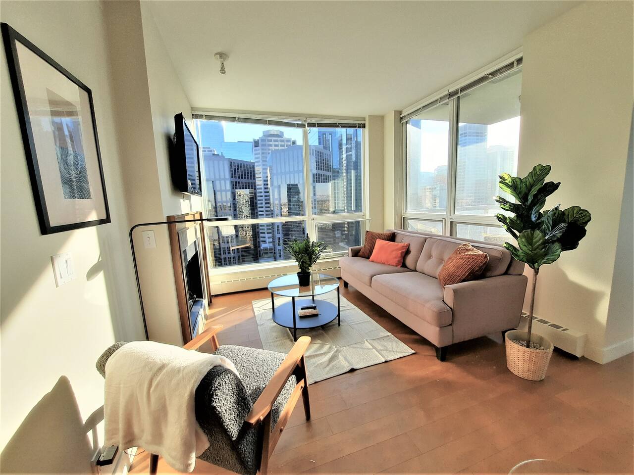 - Balcony with city views - Access to amenities floor (Note: Hot Tub Undergoing Repairs) - Dedicated U/G parking stall - Air conditioning - High speed internet - In-suite washer and dryer - High security building - Fresh linens - Complimentary Coffee and Tea - Ironing board & Iron - Clean Towels