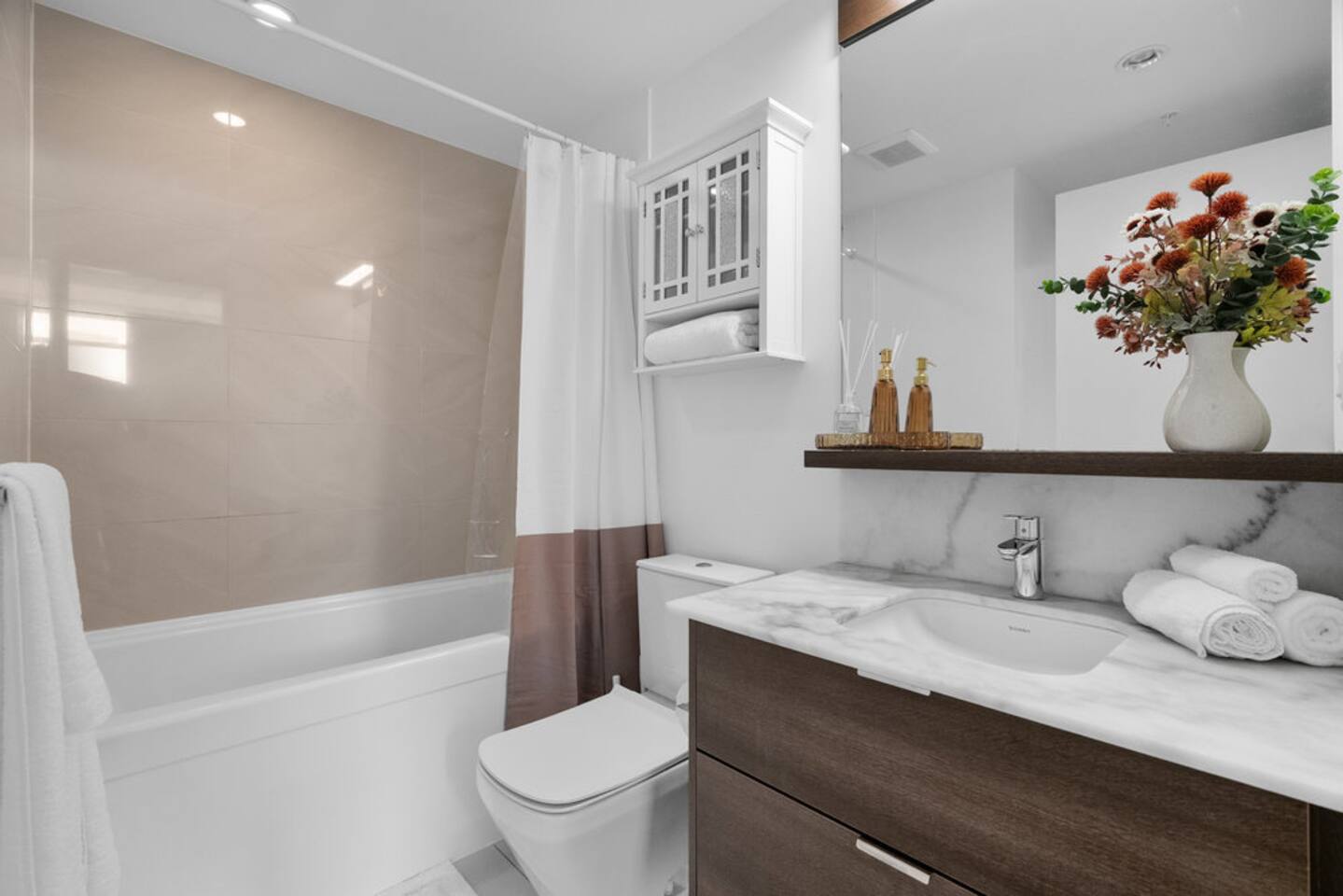 - Unbeatable Location: Steps from Prince’s Island Park, the Riverwalk, trendy cafés, and some of Calgary’s best dining. - Spacious Balcony with Hammock: Perfect for morning coffee or evening wine with a view. - Dedicated Workspace: Stay productive with a comfortable desk setup in the den. - Entertainment: Enjoy your favorite shows and movies with a premium soundbar & subwoofer for immersive sound. - Free Underground Parking: Secure and convenient parking for one vehicle. - Year-Round Comfort: Air conditioning keeps you cool in summer; cozy interiors keep you warm in winter. - Central & Walkable: Minutes to Calgary Tower, Stephen Ave shopping, and the LRT station for easy city access. - Building Amenities: Relax in the resident lounge. - In-Suite Laundry: Enjoy the convenience of washing and drying clothes right at home. - Secure Building with Elevator: Safe, easy access to your unit with modern security and elevator service.